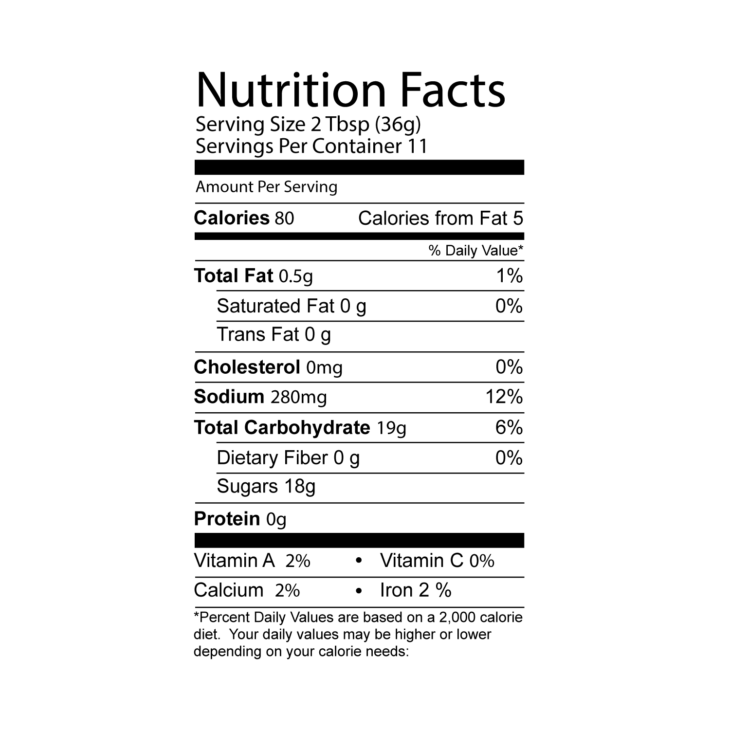 INGREDIENTS: KETCHUP (TOMATO CONCENTRATE,HIGH FRUCTOSE CORN SYRUP, SALT, ONION POWDER, GARLIC POWDER, NATURAL FLAVOR ) BROWN SUGAR (SUGAR,MOLASSES) MOLASSES, APPLE CIDER VINEGAR, (DISTILLED VINEGAR,APPLE,WATER) WATER,SUGAR, WORCESTERSHIRE (WATER, SALT, CARAMEL COLOR, HYDROLYZED